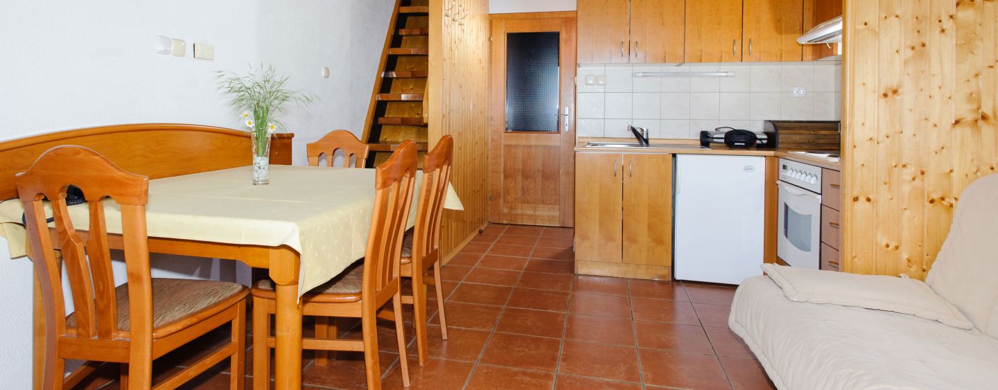 • Apartman tipa 1/2: kuhinja, dva ležaja, kupaonica s tušem, sa tv i telefon. Veličina: 19 m2.