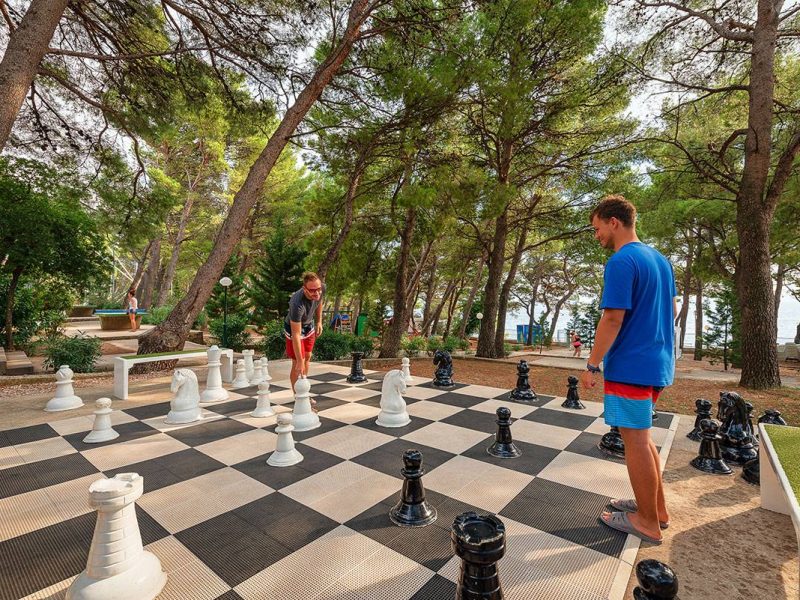 Smješten tik do bijele šljunčane plaže i njezinog kristalno čistog mora, resort se predstavlja kao mirno utočište. Nudi širok izbor aktivnosti za djecu i teniske terene za aktivnu rekreaciju, hotel je paviljonskog tipa, smješten u borovoj šumi, na zapadnom kraju grada, izvrsna lokacija uz more u blizini centra Makarske · 1,2 km od grada i 15 m od mora